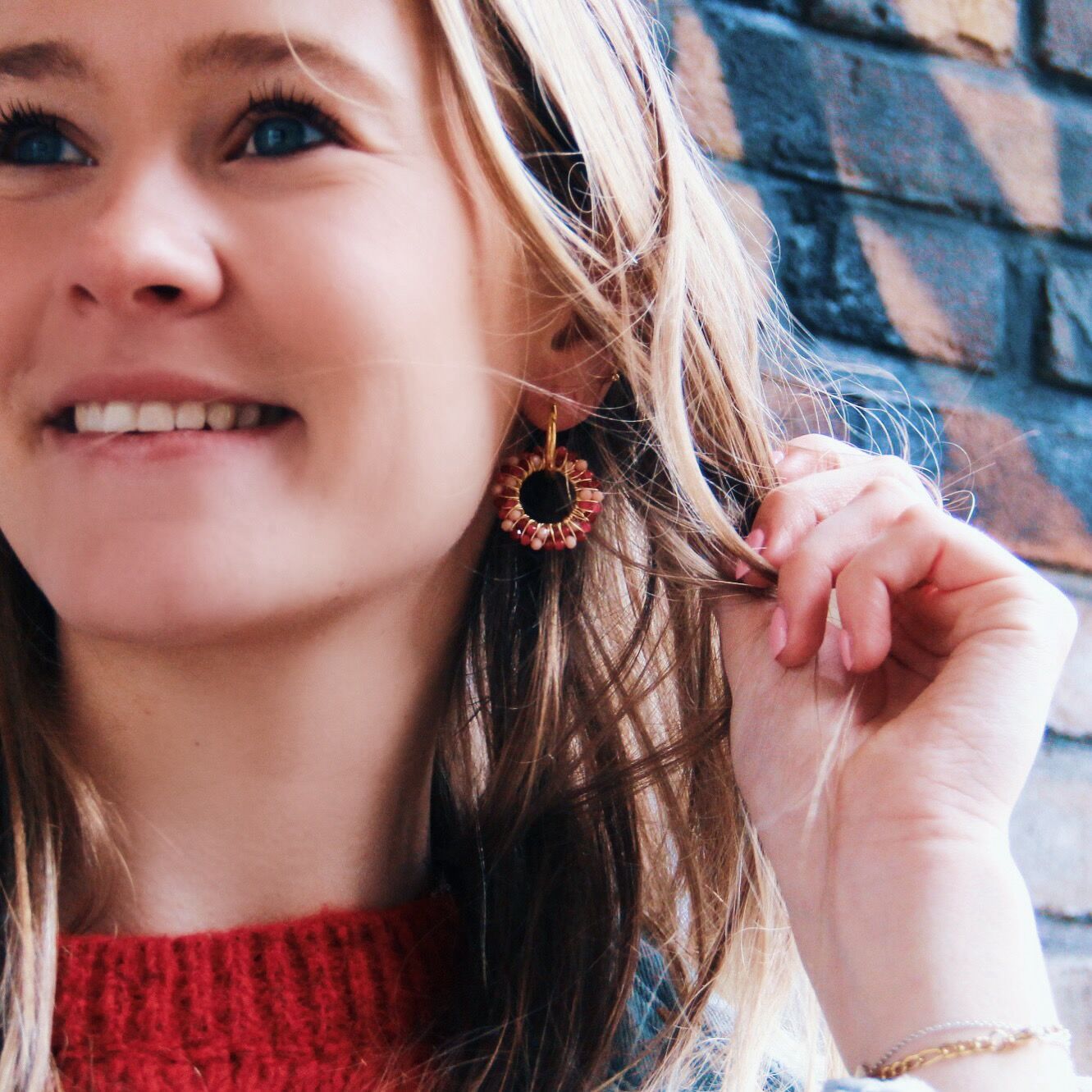 Die Creolen haben einen Durchmesser von 20 mm bei einer Dicke von 2,5 mm, der facettierte Ring misst 26 mm und schimmert bei jeder Bewegung in strahlendem Pink und Rot. Diese Ohrringe sind auch in weiteren Farbvariationen erhältlich – finde deinen persönlichen Favoriten!